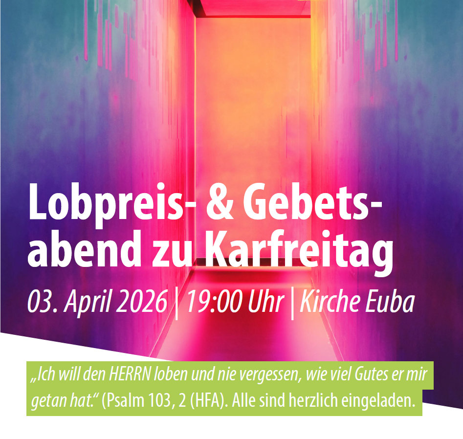 Herzliche Einladung zum Lobpreis- & Gebetsabend zu Karfreitag in der Kirche in Euba.